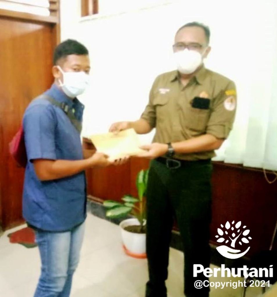 JATIROGO, PERHUTANI (1/3/2021) | Administratur Perhutani Kesatuan Pemangkuan Hutan (KPH) Jatirogo menyerahkan premi jaminan kematian yang diterima dari Asuransi Amanah Githa kepada ahli waris Kunardi yang merupakan anak dari Priyadi selaku tenaga kerja kapling di Tempat Penimbunan Kayu (TPK) Sokongancar, bertempat di Kantor KPH Jatirogo, Senin ( 1/3).