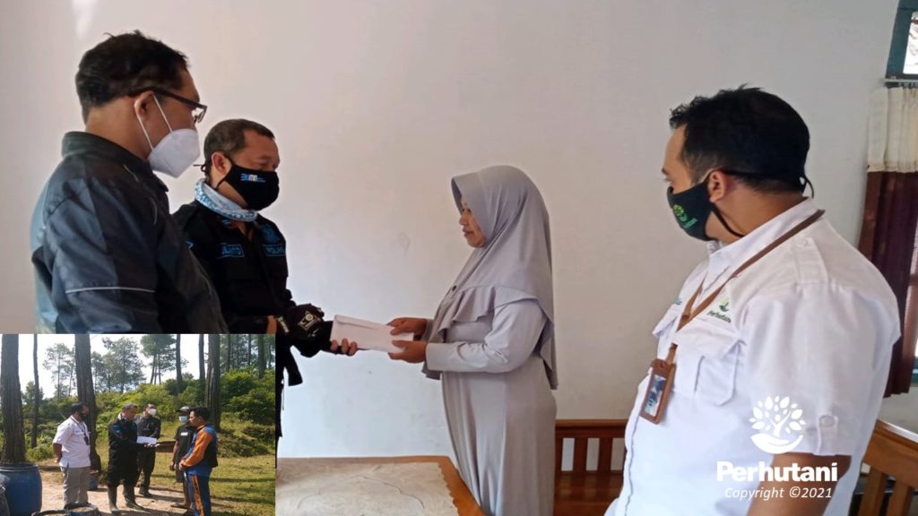PEKALONGAN BARAT, PERHUTANI (12/08/2021) | Perhutani Kesatuan Pemangkuan Hutan (KPH) Pekalongan Barat menyerahkan santunan kematian dari Asuransi Jiwa Amanah Githa masing-masing sebesar Rp 6.000.000,- kepada ahli waris Sudri dan Walim, penyadap getah pinus di Resort Pemangkuan Hutan (RPH) Moga, Bagian Kesatuan Pemangkuan Hutan (BKPH) Moga yang telah meninggal dunia, Selasa (10/08).