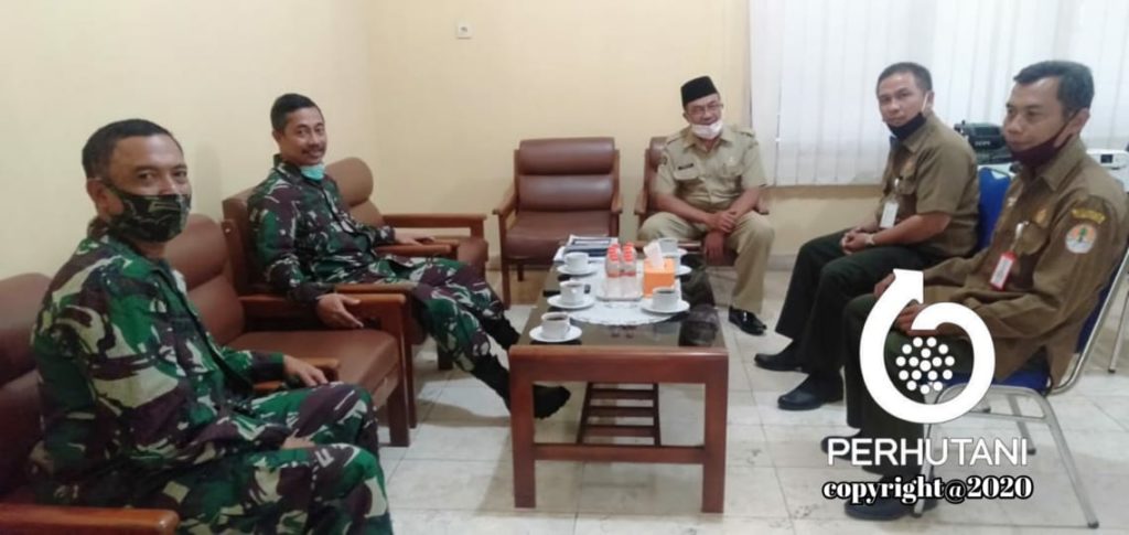 BLITAR, PERHUTANI (19/9/2020) | Administratur Perhutani Kesatuan Pemangkuan Hutan (KPH) Blitar Teguh Jati Waluyo menerima kunjungan dari utusan Kementerian Pertahanan Kolonel Arh Eko Wibowo Kusdianto yang didampingi Komandan Distrik Militer (Dandim) 0808 Blitar dan Kepala Dinas Pertanian Kabupaten Blitar yang melakukan pendataan lahan untuk program Badan Cadangan Logistic Strategis (BCLS) pada Jumat (18/9).