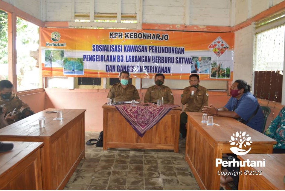 KEBONHARJO, PERHUTANI (01/02/2021) | Perum Perhutani Kesatuan Pemangkuan Hutan (KPH) Kebonharjo menggelar Sosialisasi Kawasan Perlindungan kepada Lembaga Masyarakat Desa Hutan (LMDH) di Kantor Bagian Kesatuan Pemangkuan Hutan (BKPH) Tawaran yang berada di Kabupaten Tuban, Senin (01/02).