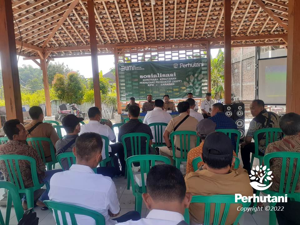 SARADAN, PERHUTANI (04/07/2022) | Perhutani Kesatuan Pemangkuan Hutan (KPH) Saradan melaksanakan kegiatan sosialisasi Kemitraan Kehutanan Perhutani Produktif (KKPP) bertempat di balai Desa Kenongorejo Kecamatan Pilangkenceng Kabupaten Madiun, Senin (04/07)