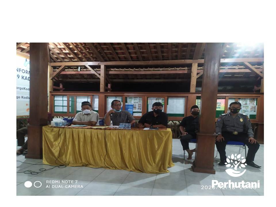 MANTINGAN, PERHUTANI (22/12/2020) | Kesatuan Pemangkuan Hutan (KPH) Mantingan melaksanakan kegiatan Sosialisasi Perhutanan Sosial dengan Peraturan Menteri Nomor : 83/MENLHK/SETJEN/KUM.1/10/2016 tentang Perhutanan Sosial (PS) dan Peraturan Menteri nomor: 39/MENLHK/SETJEN/KUM.1/6/2017 Perhutanan Sosial di wilayah kerja Perum Perhutani atau yang lebih dikenal P83 dan P39 bertempat di Balai desa Kadiwono (22/12).