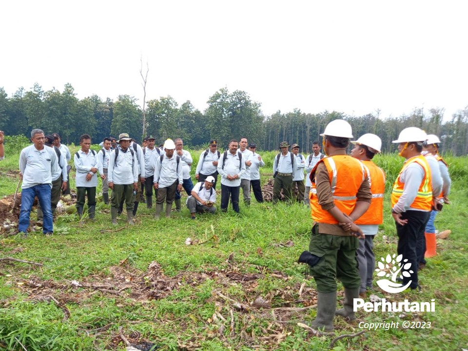 BALAPULANG, PERHUTANI (26/01/2023) | Kesatuan Pemangkuan Hutan (KPH) Balapulang mengadakan sosialisasi penerapan SNI 8911 tahun 2020 serta Penata Usahaan Hasil Hutan (PUHH) bersama LMDH guna penyamaan persepsi. Kegiatan dilaksanakan di petak 99A1 Resort Pemangkuan Hutan (RPH) Kaligimber, Bagian Kesatuan Pemangkuan Hutan (BKPH) Margasari, Kamis (26/01).