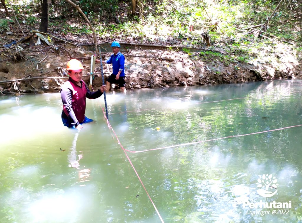 MADURA, PERHUTANI (07/11/2022) | Perhutani Kesatuan Pemangkuan Hutan (KPH) Madura sosialisasikan aplikasi Stasiun Pemantauan Lingkungan (SPL) Debit Air Sungai kepada sejumlah LMDH di Sumenep, adapun salah satu titik lokasi sample debit air sungai diantaranya SPLS 06 Malenju yang terletak di petak 43b Resort Pemangkuan Hutan (RPH) Sumenep, wilayah Bagian Kesatuan Pemangkuan Hutan (BKPH) Madura Timur, Senin (07/11).