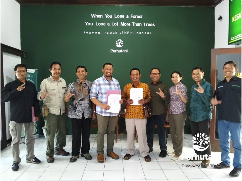KENDAL, PERHUTANI (19/09/2024)│Dalam rangka optimalisasi Hasil Hutan Bukan Kayu (HHBK), Perhutani Kesatuan Pemangkuan Hutan (KPH) Kendal menandatangani kerjasama agroforestri kapuk randu dengan Pengusaha kapuk randu. Kegiatan dilaksanakan di ruang rapat dengan disaksikan jajaran manajemen kantor KPH Kendal, Kamis (19/09).