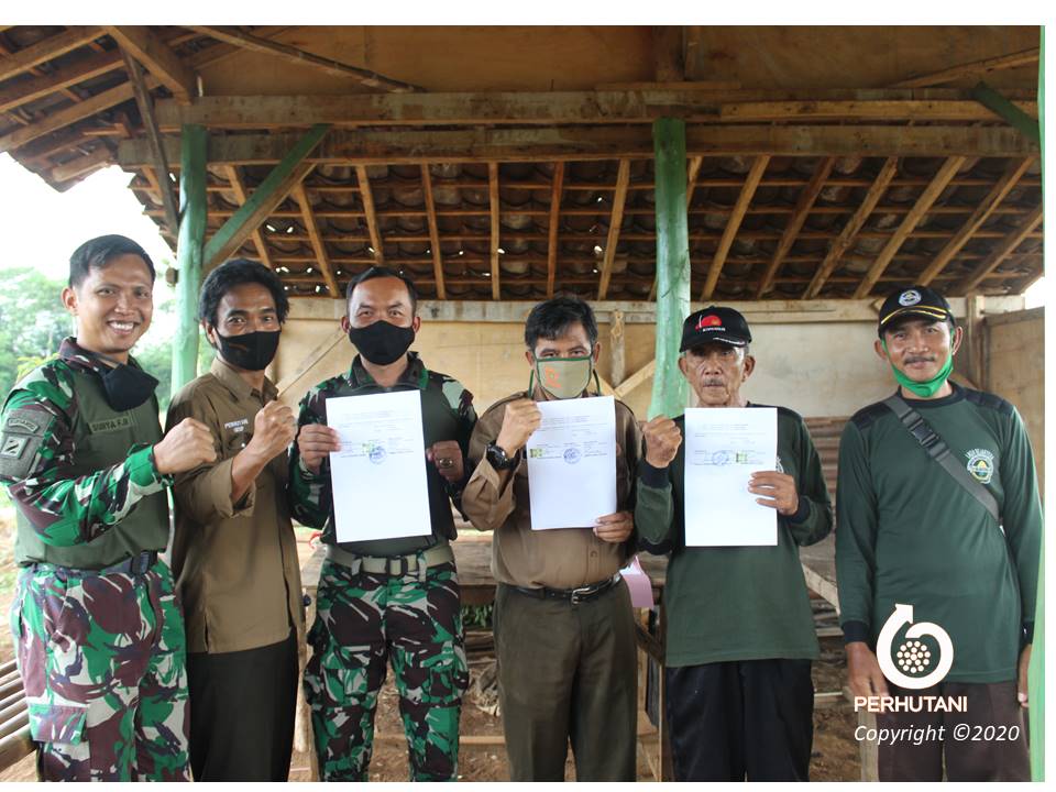 PEMALANG, PERHUTANI (14/10/2020) | Bertempat di Gubug Kerja Lembaga Masyarakat Desa Hutan (LMDH) Sejahtera Desa Peguyangan, Kecamatan Bantarbolang, Kabupaten Pemalang, Perhutani Kesatuan Pemangkuan Hutan (KPH) Pemalang, Koperasi Primer Tribun II Komando Pasukan Khusus (Kopassus) Kandang Menjangan Solo dan LMDH Sejahtera melaksanakan penandatanganan Perjanjian Kerja Sama (PKS), Selasa (13/10).