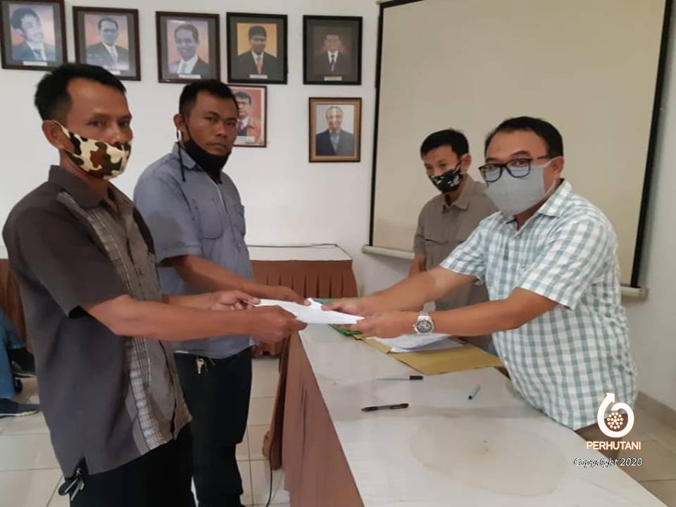 BOGOR, PERHUTANI (26/06/2020) |Administratur Kesatuan Pemangkuan Hutan (KPH) Bogor Ahmad Rusliadi melakukan penandatanganan kesepakatan dan negosiasi kerjasama pengelolaan Wisata Curug Cibingbin, bertempat di ruang Aula rapat besar Kesatuan Pemangkuan Hutan (KPH) Bogor, Jumat (26/06).