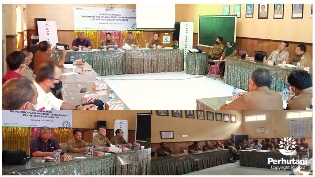 TASIKMALAYA, PERHUTANI (24/08/2022) | Perhutani KPH Tasikmalaya menerima kunjungan kerja Tim Pembina Rehabilitasi Hutan Dan Lahan (RHL) Wilayah Balai Pengelolaan Daerah Aliran Sungai Hutan Lindung (BPDAS) Cimanuk-Citanduy Dinas Kehutanan Provinsi Jawa Barat, bertempat di Aula Kantor KPH Tasikmalaya Jl. Kehutanan Nomor 6 Kelurahan Empangsari kecamatan Tawang Kota Tasikmalaya, Selasa (23/08/2022)