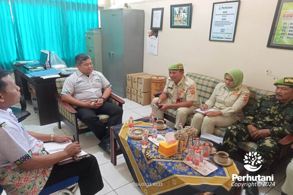 BLITAR, PERHUTANI (03/07/2024) | Perum Perhutani Kesatuan Pemangkuan Hutan (KPH) Blitar mengadakan audiensi dengan Pengurus Pimpinan Cabang Pemuda Panca Marga (PC PPM) Kabupaten Blitar, yang merupakan putra-putri pejuang Kemerdekaan RI, di Kantor Perum Perhutani KPH Blitar pada Rabu (3/7). Audiensi ini bertujuan untuk menjalin sinergitas antara Perum Perhutani KPH Blitar dan PC PPM Kabupaten Blitar, serta membahas potensi kerjasama di berbagai bidang.