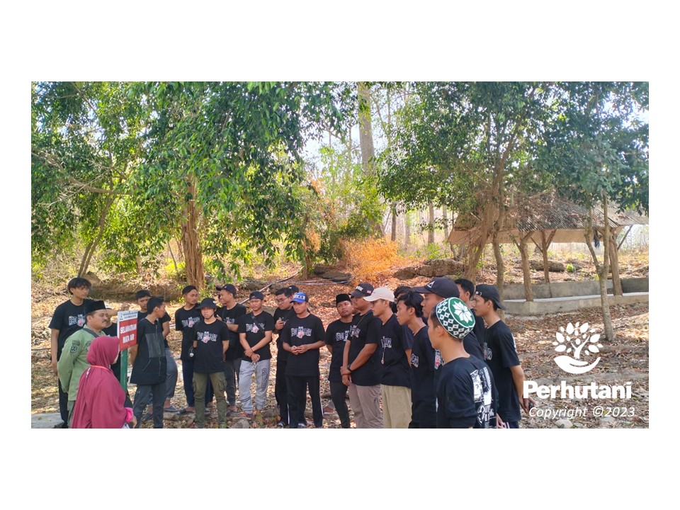 TUBAN, PERHUTANI (16/10/2023) | Perhutani Kesatuan Pemangkuan Hutan (KPH) Tuban, wilayah Bagian Kesatuan Pemangkuan Hutan (BKPH) Kranji melakukan edukasi mengenai manfaat pentingnya sumberdaya hutan dan dampak yang diakibatkan dari kerusakan hutan terhadap lingkungan, kepada sejumlah mahasiswa dari Universitas Kyai Faqih Gresik (Unkafa) yang tengah melakukan Kuliah Kerja Nyata (KKN) tahun 2023 di Kecamatan Panceng, Kabupaten Gresik, Minggu (15/10).