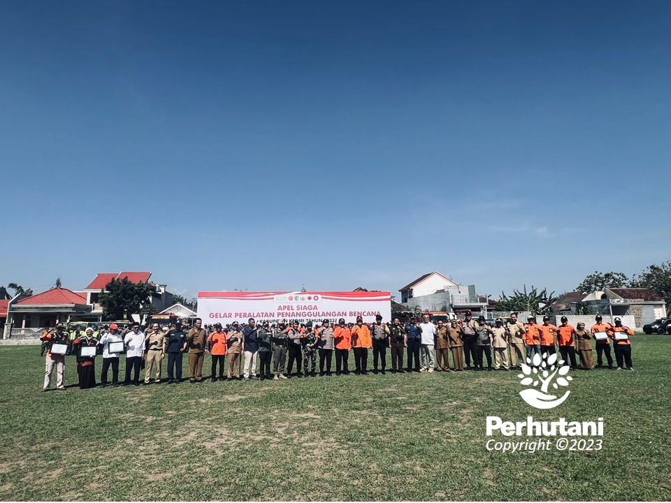 KEDIRI, PERHUTANI (12/12/2022) | Perum Perhutani Kesatuan Pemangkuan Hutan (KPH) Kediri, turut serta berpartisipasi dalam gelar apel siaga, menghadapi ancaman bencana Hidrometereologi yang digelar Pemerintah Kabupaten (Pemkab) Kediri, yang diselenggarakan di Lapangan Desa Doko, Kecamatan Ngasem, Kabupaten Kediri pada Selasa (12/12).
