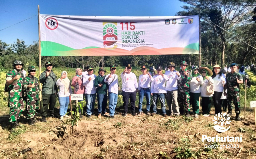 PERHUTANI, BLITAR (28/05/2023) | Memperingati Hari Bakti Dokteri Indonesia ke 115 tahun 2023, Perhutani Kesatuan Pemangkuan Hutan (KPH) Blitar bersama Ikatan Dokter Indonesia (IDI) dan Forkopimda Kota/Kabupaten Blitar menggelar penanaman pohon produktif di kawasan hutan petak 38i RPH Sumberingin BKPH Rejotangan, Blitar (27/5).
