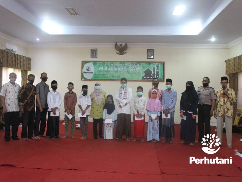 PADANGAN, PERHUTANI (5/10/2020) | Memperingati Maulid Nabi Muhammad SAW, Perhutani Kesatuan Pemangkuan Hutan (KPH) Padangan memberikan santunan sejumlah uang kepada 10 anak yatim piatu bertempat di Kantor KPH Padangan, Kamis (5/10).