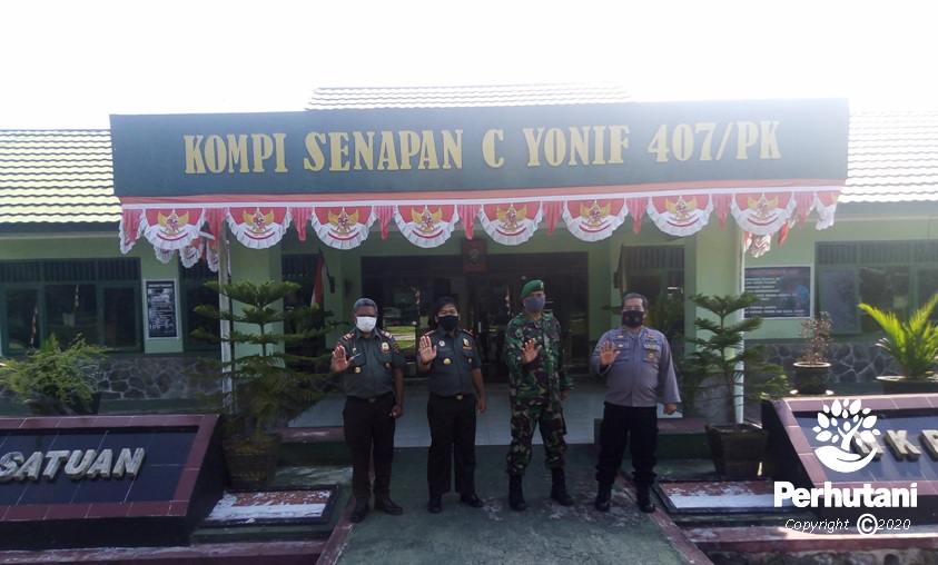 Komandan Kompi Senapan C Yonif 407 Pekalongan, Letda Inf. Suryono beserta jajarannya menyambut baik atas kunjungan Administratur KPH Pekalongan Timur beserta jajaran bersama Pabin Jagawana KPH Pekalongan Timur.