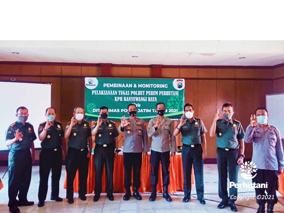 BANYUWANGI UTARA, PERHUTANI (28/9/2021) | Perhutani Kesatuan Pemangkuan Hutan (KPH) se-wilayah Banyuwangi (KPH Banyuwangi Barat, Banyuwangi Utara dan Banyuwangi Selatan) mengikuti kegiatan Pembinaan Personil dan Monitoring yang diadakan oleh Perhutani Divisi Regioanal (Divre) Jawa Timur bekerjasama dengan Direktorat Binmas Polda Jatim, Selasa (28/9).