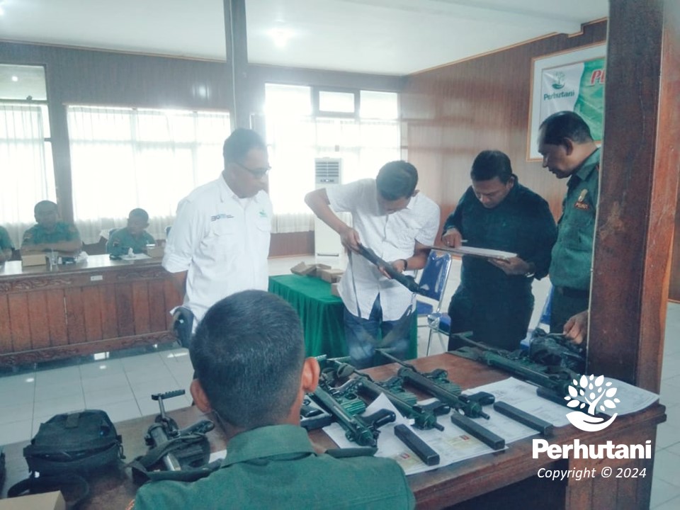 RANDUBLATUNG, PERHUTANI (04/03/2024) | Perhutani Kesatuan Pemangkuan Hutan (KPH) Randublatung bekerjasama dengan Kepolisian Resort (Polres) Blora melakukan kegiatan pemeriksaan rutin penggunaan senjata api di KPH Randublatung. Kegiatan ini merupakan salah satu bentuk sinergi dalam upaya pengamanan hutan dari illegal logging, Senin (04/03).