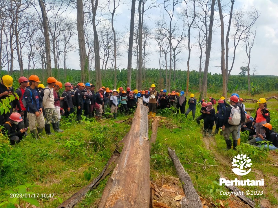 RANDUBLATUNG, PERHUTANI (17/01/2023) | Kesatuan Pemangkuan Hutan (KPH) Randublatung menerima 95 mahasiswa dari Fakultas Kehutanan Universitas Gadjah Mada (UGM) yang akan melaksanakan kegiatan praktik lapangan bidang teresan dan tebangan, Selasa (17/01).