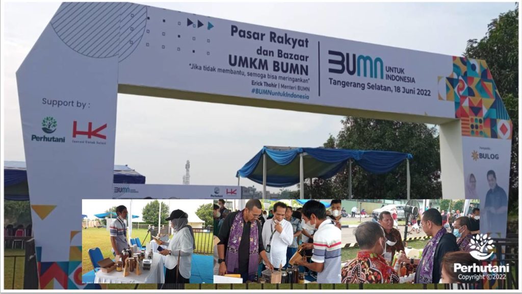 TASIKMALAYA, PERHUTANI (19/06/2022) | Dalam rangka mempromosikan produk unggulan mitra binaannya, Perhutani Kesatuan Pemangkuan Hutan (KPH) Tasikmalaya berpartisifasi dalam ajang Pasar Rakyat dan Bazaar Usaha Mikro, Kecil dan Menengah (UMKM) Badan Usaha Milik Negara (BUMN), bertempat di lapangan Bandara Pondok Cabe Pamulang Tangerang Selatan Provinsi Banten, Sabtu (18/06/2022).