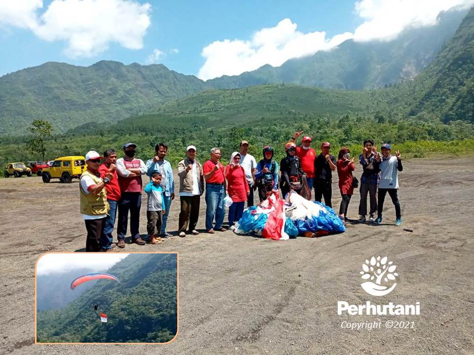 TASIKMALAYA PERHUTANI (18/08/2021) | Dalam upaya mempromosikan daya tarik wisata alam Pasir Datar, Perhutani Kesatuan Pemangkuan Hutan (KPH) Tasikmalaya bekerjasama dengan Pengurus Cabang Olah Raga Gantolle dan Paralayang Kabupaten Tasikmalaya mengadakan latihan bersama dan pengibaran bendera merah putih dalam rangka HUT RI Ke 76, bertempat di bibir kawah Wana Wisata Gunung Galunggung dan di lokasi wisata alam Pasir Datar, Selasa (17/08).