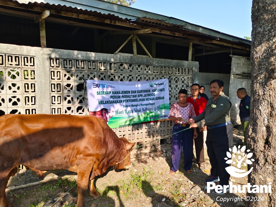 JATIROGO, PERHUTANI (18/06/2024) | Dalam rangka memperingati Hari Raya Idul Adha 1445 H, Perum Perhutani Kesatuan Pemangkuan Hutan (KPH) Jatirogo menggelar kegiatan penyembelihan hewan qurban berupa satu ekor sapi dan satu ekor kambing di musholla An Nur, lingkup kantor KPH Jatirogo, pada Selasa (18/06).