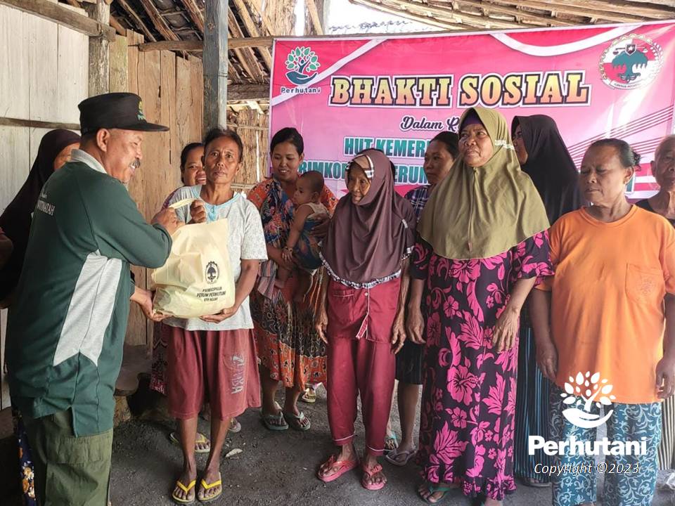 NGAWI, PERHUTANI (17/08/2023) | Memperingati HUT RI ke-78, Perhutani Kesatuan Pemangkuan Hutan (KPH) Ngawi bersama Primer Koperasi Karyawan (Primkopkar) Perhutani membagikan sejumlah paket sembako berisi beras, minyak, gula dan mie instan kepada warga sekitar hutan di wilayah Resort Pemangkuan Hutan (RPH) Sentul, Bagian Kesatuan Pemangkuan Hutan (BKPH) Watutinatah, pada Rabu (16/08).