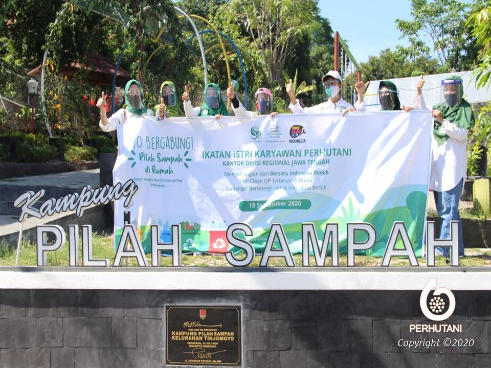 SEMARANG, PERHUTANI (19/09/2020) | Ikatan Istri Karyawan Perhutani (IIKP) Divisi Regional Jawa Tengah (Divre Jateng) melakukan penyerahan dan penimbangan sampah dalam mendukung aksi Gerakan Indonesia Bersih -World Cleanup Day 2020 di bank sampah Ngudi Lestari (Gade) Kelurahan Tinjomoyo, Kota Semarang, Sabtu (19/09).