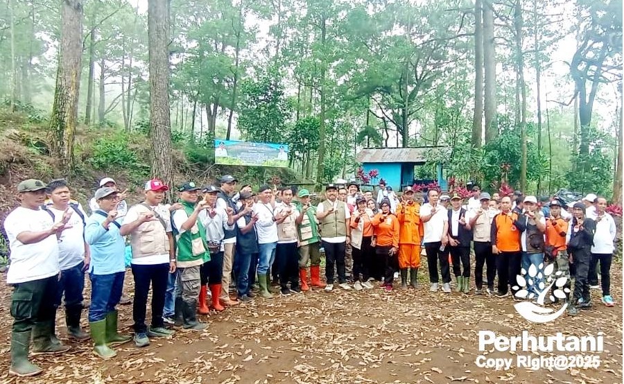 LAWU DS, PERHUTANI (11/12/2025) | Perhutani Kesatuan Pemangkuan Hutan (KPH) Lawu Ds ambil bagian dalam penghijauan lingkungan menyelamatkan Sumber Mata air melalui penanaman pohon bersama para pemangku kepentingan Kabupaten Ngawi, yang berlangsung di kawasan hutan ukir bayi petak 30 Resor Pemangkuan Hutan (RPH) Ngetrep, Bagian Kesatuan Pemangkuan Hutan (BKPH) Lawu Utara, masuk Desa Girimulyo, Kecamatan Jogorogo, Kabupaten Ngawi, pada Kamis (11/12).