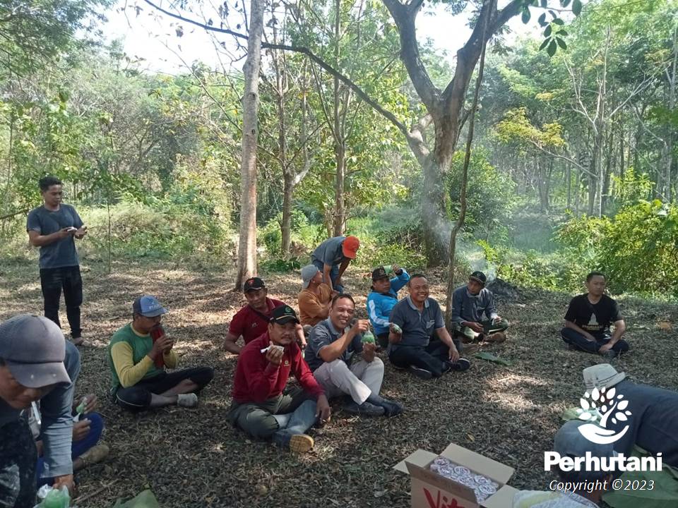 KEBONHARJO, PERHUTANI (18/08/2022) | Dalam rangka meningkatkan sinergitas Perum Perhutani Kesatuan Pemangkuan Hutan (KPH) Kebonharjo bersama Lembaga Masyarakat Desa Hutan (LMDH) Dharma Wana Raharja Desa Wonokerto Kecamatan Sale Kabupaten Rembang melaksanakan kegiatan gotong-royong membersihkan mata air Sumber Penewen di petak 98 Resort Pemangkuan Huitan (RPH) Tuder Bagian Kesatuan Pemangkuan Hutan (BKPH) Tuder, Jumat (18/08).