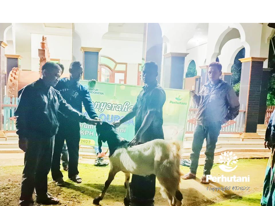 KENDAL, PERHUTANI (11/07/2022) │ Bertempat di halaman masjid Baitul Muslihin Dukuh Begal, Desa Kluwih, Kecamatan Bandar, Kabupaten Batang, Perhutani Kesatuan Pemangkuan Hutan (KPH) Kendal menyerahkan hewan qurban seekor kambing kepada masyarakat setempat dalam rangka perayaan Idul Adha, Sabtu (09/07).