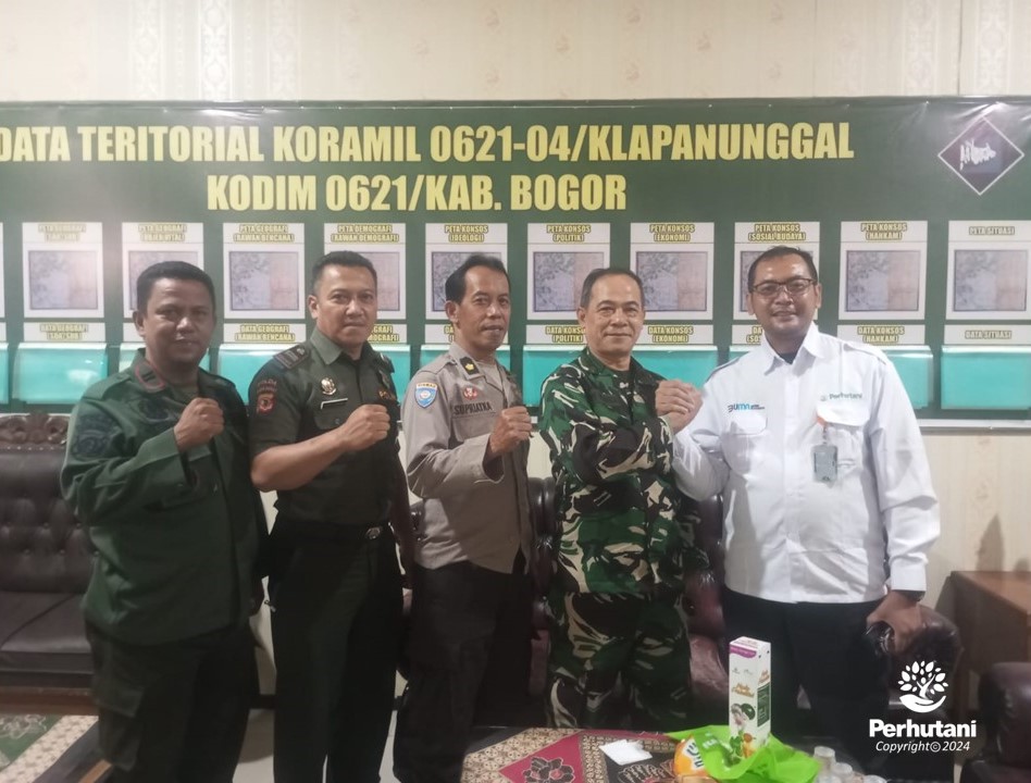 BOGOR, PERHUTANI (08/02/2024) | Perum Perhutani Kesatuan Pemangkuan Hutan Bogor lakukan koordinasi dengan mengunjungi Komando Rayon Militer (Koramil) 0621-04 Klapanunggal dalam rangka antisipasi Gangguan Keamanan Hutan (Gukamhut) wilayah Bagian Kesatuan Pemangkuan Hutan (BKPH) Jonggol, pada Rabu (07/02).
