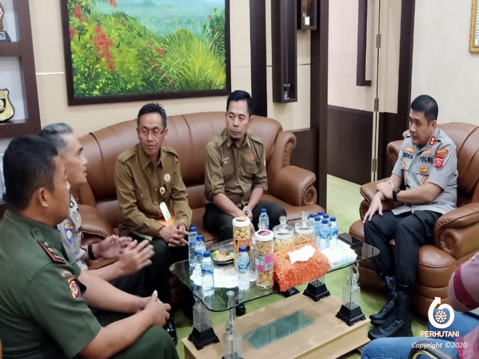 SUMEDANG, PERHUTANI (04/03/2020) | Perhutani Kesatuan Pemangkuan Hutan (KPH) Sumedang melakukan kunjungan kerja ke Kepolisian Resor (Polres) Sumedang dalam rangka pengawalan produksi dan pengamanan pelaksanaan tebangan untuk kawasan Izin Pinjam Pakai Kawasan Hutan (IPPKH) pada Jalan Tol Cisumdawu yang bertempat di Kantor Polres Sumedang, Selasa (03/03).