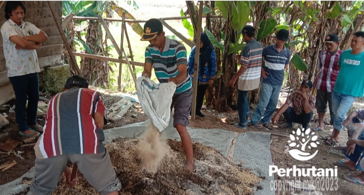 MOJOKERTO, PERHUTANI (30/01/2023) | Perum Perhutani Kesatuan Pemangkuan Hutan (KPH) Mojokerto, khususnya wilayah Bagian Kesatuan Pemangkuan Hutan (BKPH) Tapen menggelar pelatihan pembuatan pupuk organik ramah lingkungan berbahan baku limbah kotoran hewan, yang diselenggarakan di Sekretariat Lembaga Masyarakat Desa Hutan (LMDH) Rimba Makmur, Desa Asemgede, Kecamatan Ngusikan, Kabupaten Jombang, Senin (30/01)