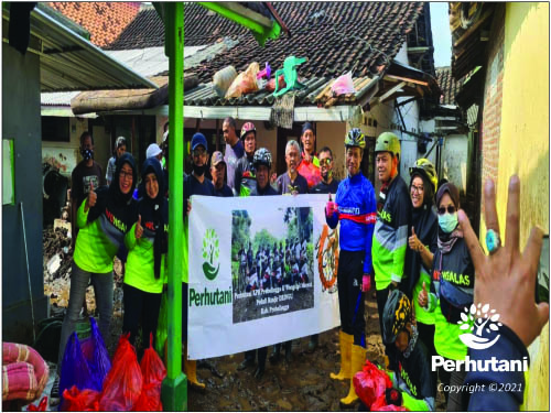 Perhutani Bersama Komunitas Gowes Bagikan Sembako Kepada Korban Banjir di Probolinggo