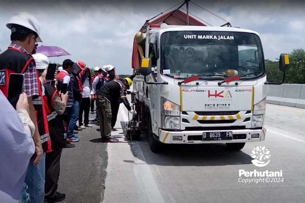 Perhutani Uji Coba Road Marking Proyek Tol Sumatera dengan Bahan Dasar Getah Pinus