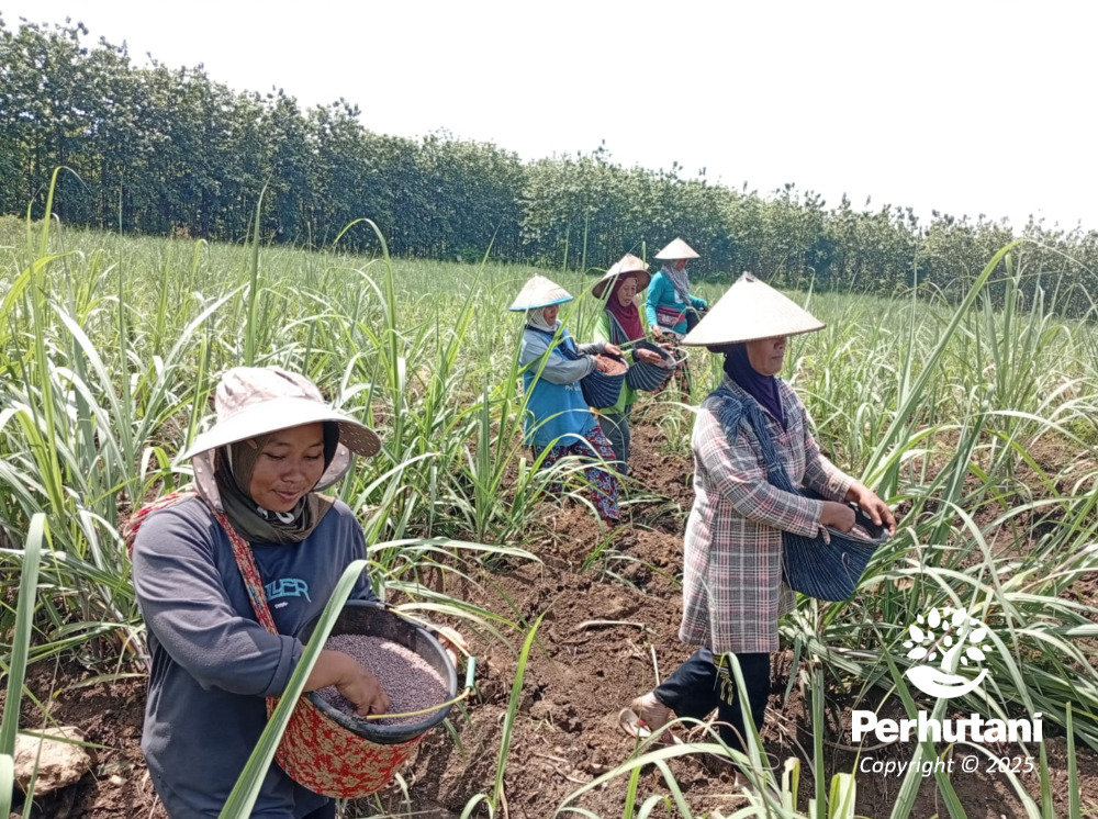Tingkatkan Produktivitas Tebu, Perhutani KPH Mantingan Bersama LMDH Sumber Rejeki Melakukan Pemupukan Agroforestry di BKPH Kebon