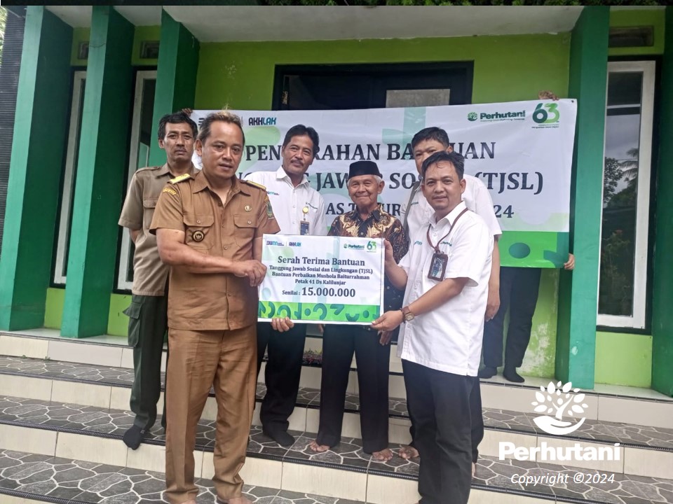 Perhutani Serahkan Bantuan Perbaikan Musala Baiturrahman Terdampak Pohon Tumbang
