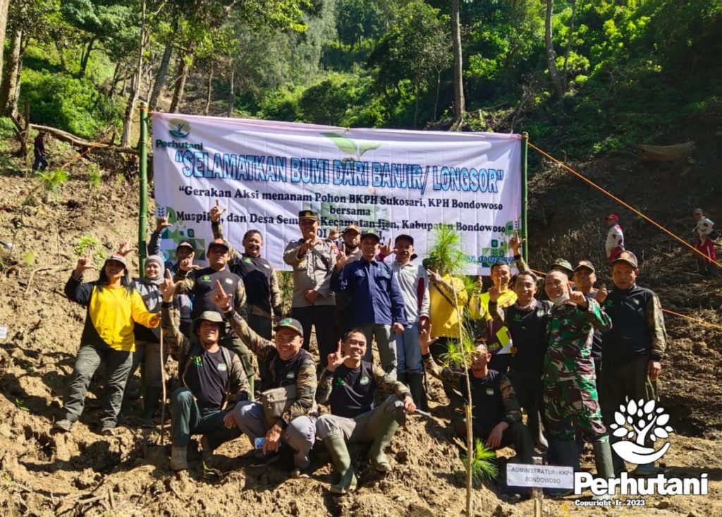 Perhutani Bondowoso bersama Stakeholders Hijaukan Eks Lokasi Tanah Longsor