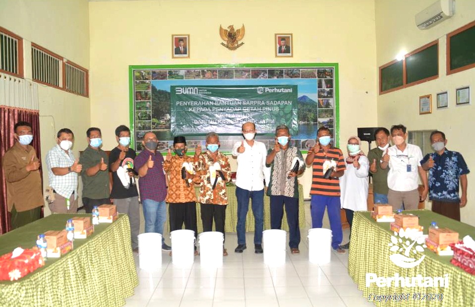 Perhutani Bagikan Sarpra Sadap Kepada Penyadap Getah Pinus di Wilayah Kerja Lawu Ds
