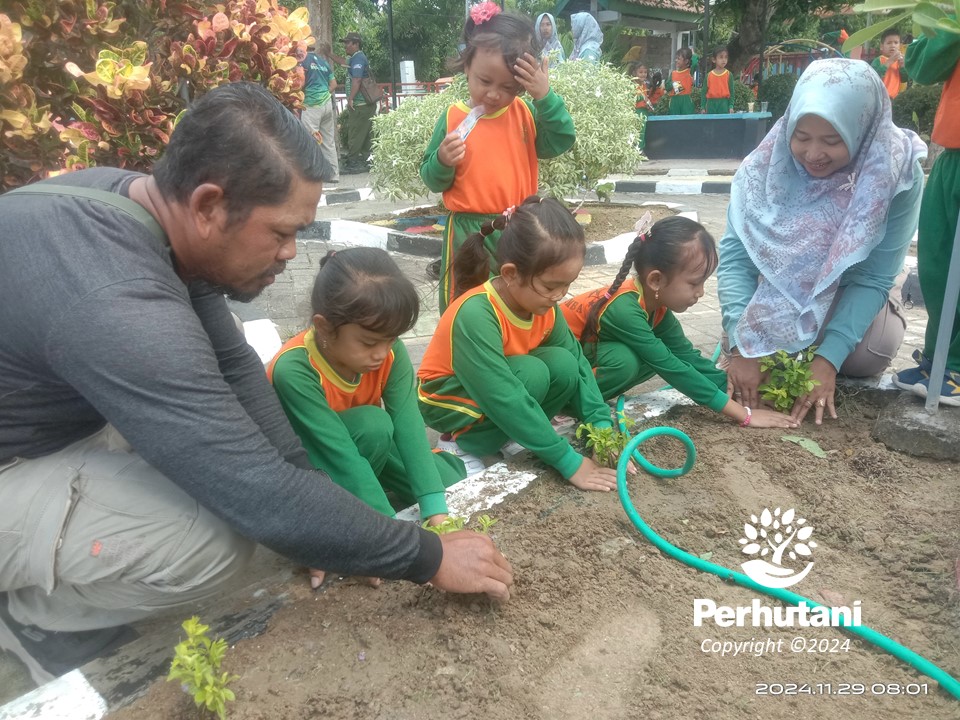 Perhutani Mojokerto Ajak Siswa TK Taruna Rimba Jatirowo Tanam Pohon untuk Peduli Lingkungan