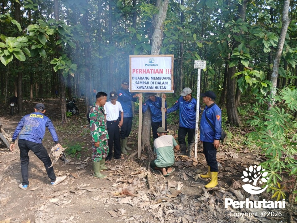 Perhutani KPH Purwodadi Laksanakan Aksi Bersih Sampah dan Pasang Plang Larangan di Kawasan Hutan