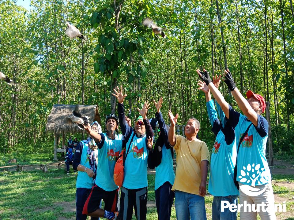 Perhutani Bersama Stakeholder Lepasliarkan 100 Burung di Wisata Raden Sekar Park Madiun