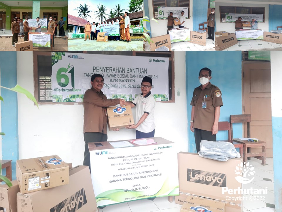 Perhutani Salurkan Bantuan TJSL Kolaborasi BUMN Berupa Perangkat TIK (Laptop dan Proyektor) Kepada Sekolahan Di Kab. Pandeglang Banten