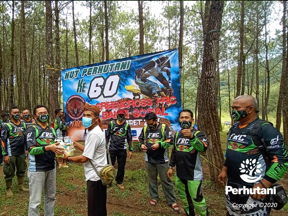 Cegah Covid-19, Perhutani Bersama Komunitas Motor FRC Bagikan Masker Kepada MDH Sukabumi