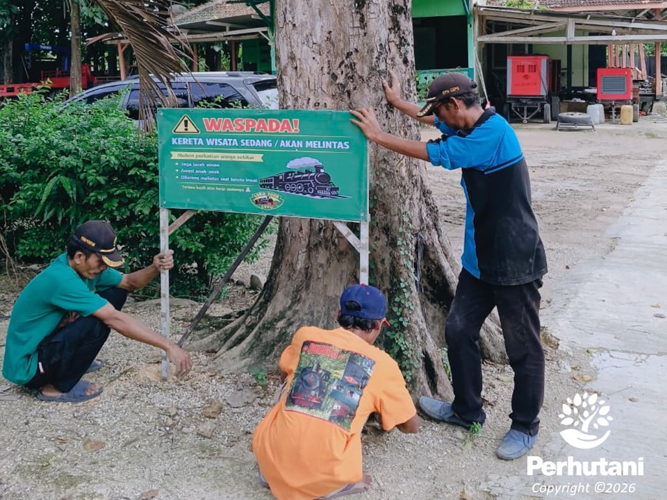 Sinergi Keselamatan Transportasi, Perhutani KPH Cepu Pasang Rambu Waspada di Jalur Wisata Rel