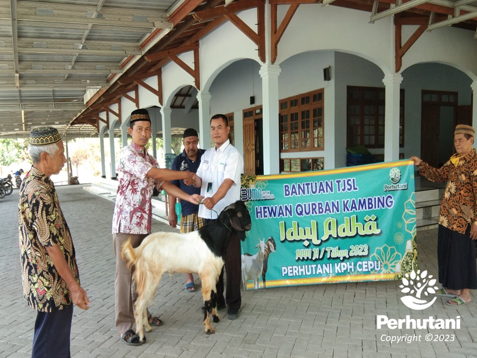 Sambut Idul Adha 1444 H, Perhutani Serahkan Bantuan Hewan Qurban di Masjid Al Falah Cepu