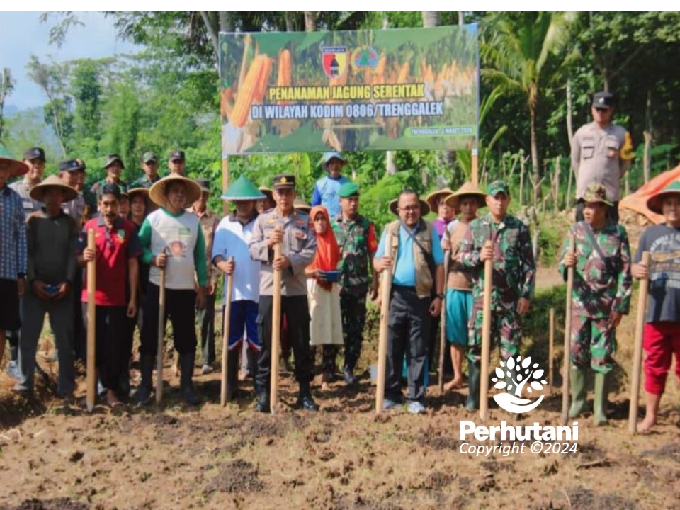 Perhutani Blitar bersama Kodim 0808 Blitar Tanam Jagung Serentak Dukung Program Ketahanan Pangan Nasional
