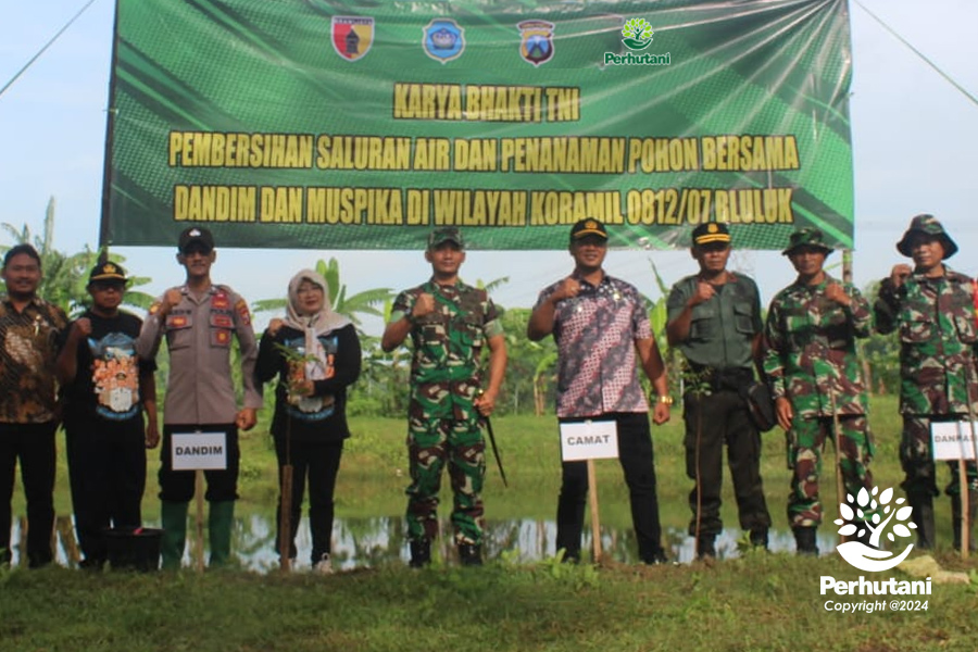 Perhutani Mojokerto dan Kodim 0812/Lamongan Gelar Penghijauan dan Bersih Bersih Waduk di Desa Primpen