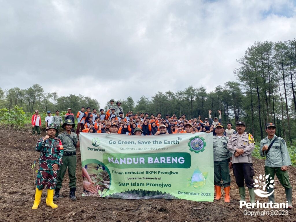 Tanamkan Rasa Peduli Lingkungan kepada Siswa Sekolah, Perhutani Lakukan Kegiatan Nandur Bareng Forkopimcam dan SMP Islam Pronojiwo