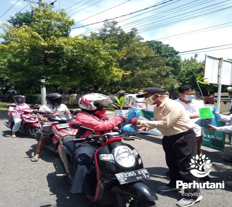 Hari Jadi ke-60, Perhutani Bagi Bibit Buah Gratis Pada Pengguna Jalan di Kendal