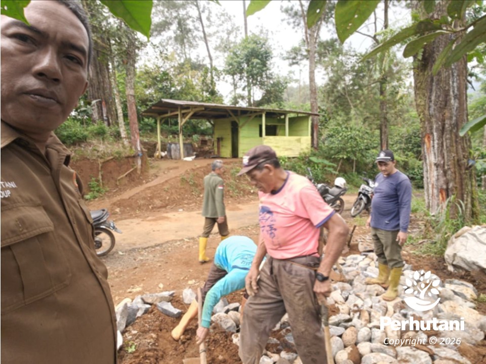 Perhutani KPH Pekalongan Timur Laksanakan Kerja Bakti Pemasangan Batu di TP Bantu Saelendra